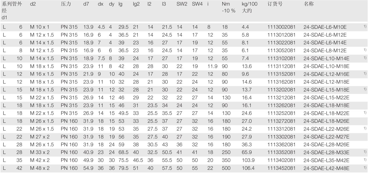 24°符合ISO 8434-1标准.