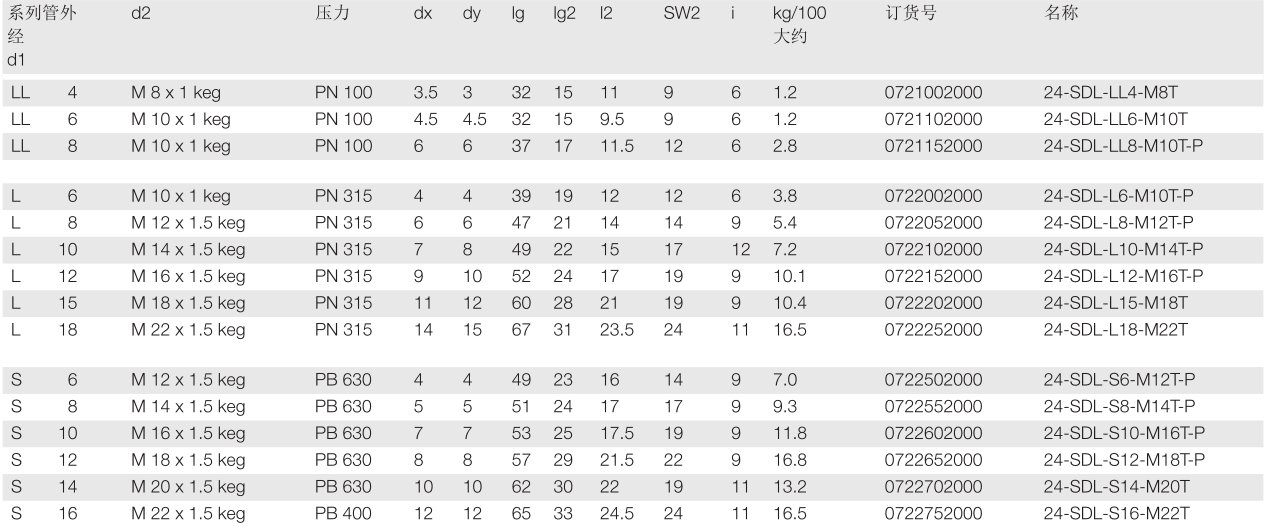 管件连接件: 24°符合ISO 8434-1标准