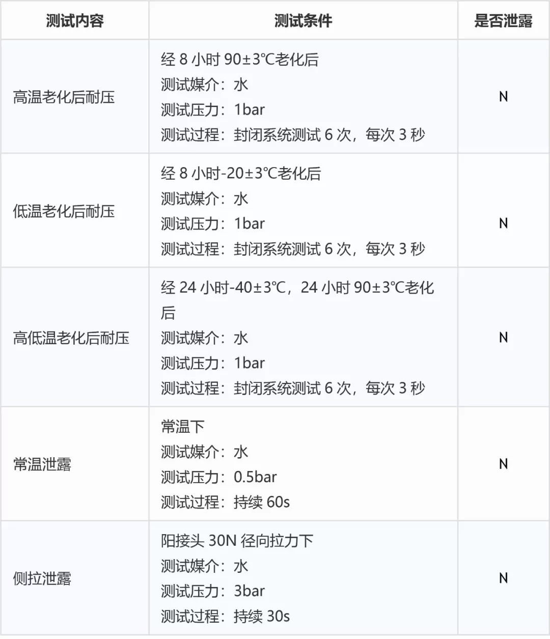 材料选用尼龙66(PA66),23℃下悬臂梁缺口冲击强度为45kJ/㎡,良好的冲击韧性避免阳接头在冲击下脱落。
