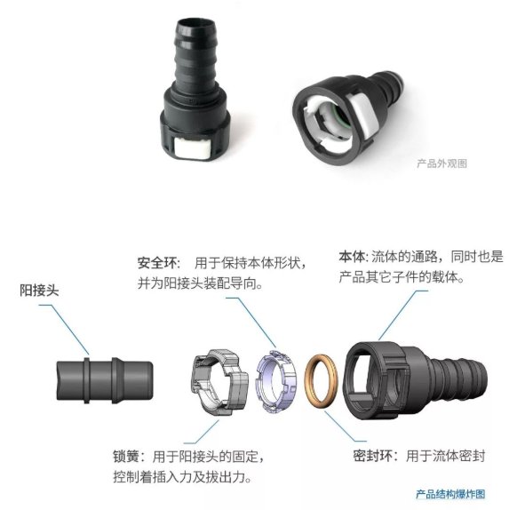 为适应各类设备的安装空间和环境工况,排水口和管路的设计呈现结构多样、材质多变等特点,因此也催生出各式各样的连接方式,例如螺纹连接,胶粘连接,熔焊连接,卡压式连接等。总的来说这些连接方式虽可以满足基本装配需求,但却很少在 密封可靠性和 安装便捷性 等问题上全面考虑。