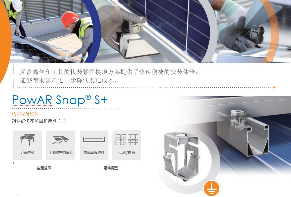 独特的接地导通设计易于组件后期拆卸维护通过多家实验室认证并获得主流组件厂商认可