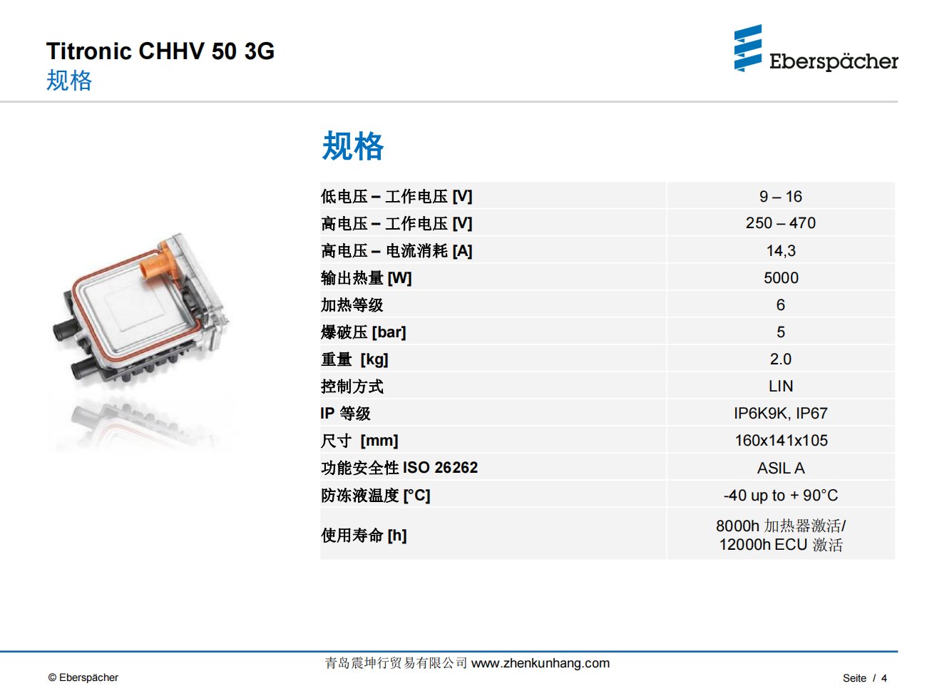 eberspacher埃贝赫高电压PTC冷却液加热器