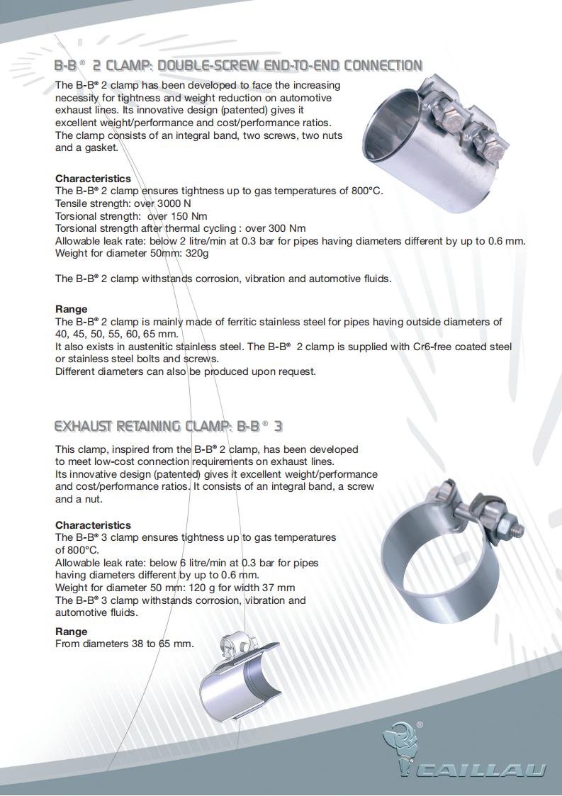 The B-B® 2 clamp is mainly made of ferritic stainless steel for pipes having outside diameters of 40, 45, 50, 55, 60, 65 mm.