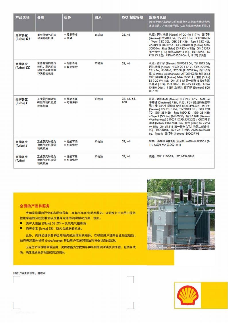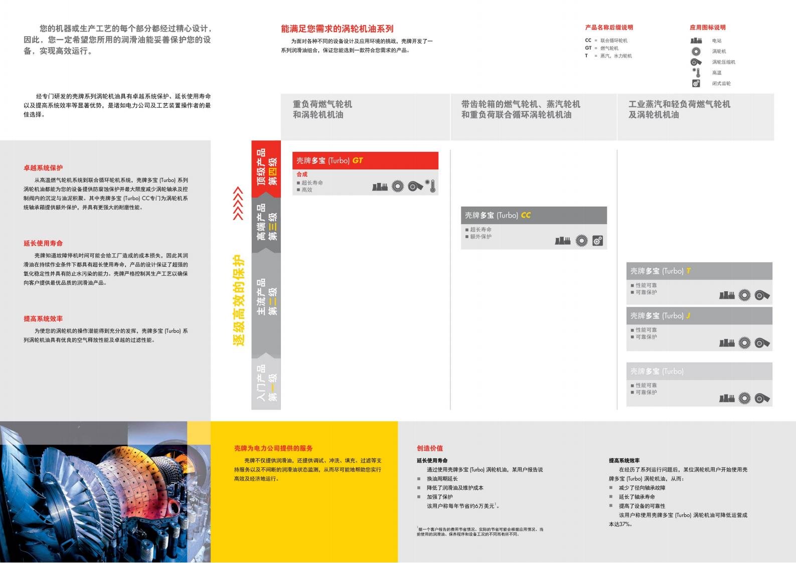 从高温燃气轮机系统到联合循环轮机系统,壳牌多宝(Turbo)系列满轮机油都能为您的设备提供防腐蚀保护并减少涡轮轴承及控制阀内的沉淀与油泥积聚。其中壳牌多宝(TurboCC专门为涡轮机系统轴承箱提供额外保护,并具有更强大的耐磨性能。