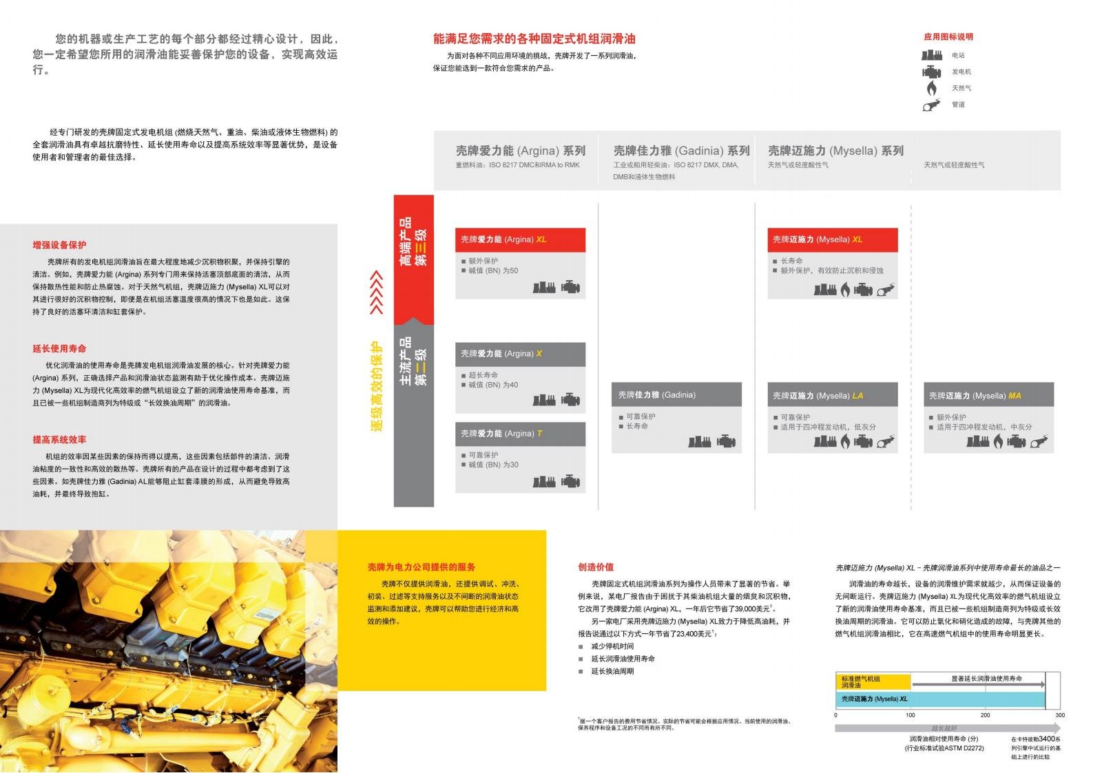 优化润港油的使用春合早责院发申机组润沿油发展的核心。针对壳牌爱力能(Argina)系列,正确选择产品和润滑油状态监测有助于优化操作成本。壳牌迈施力(Mysella)XL为现代化高效率的燃气机组设立了新的班计油使用寿命基准,而月已被一些机组制造商列为特级或“长效艳油周期”的润滑油